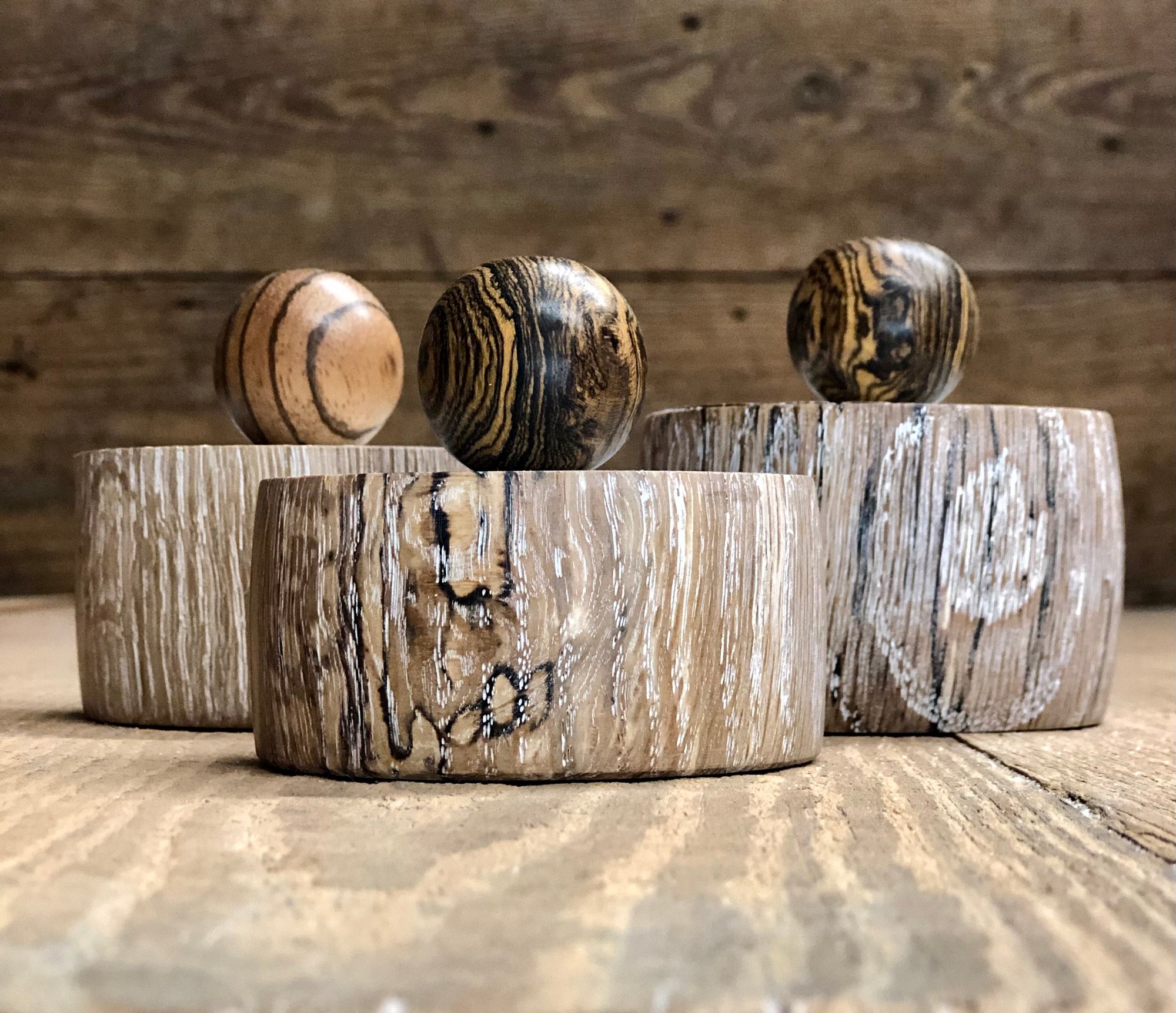 White oak ,walnut , various exotic woods .